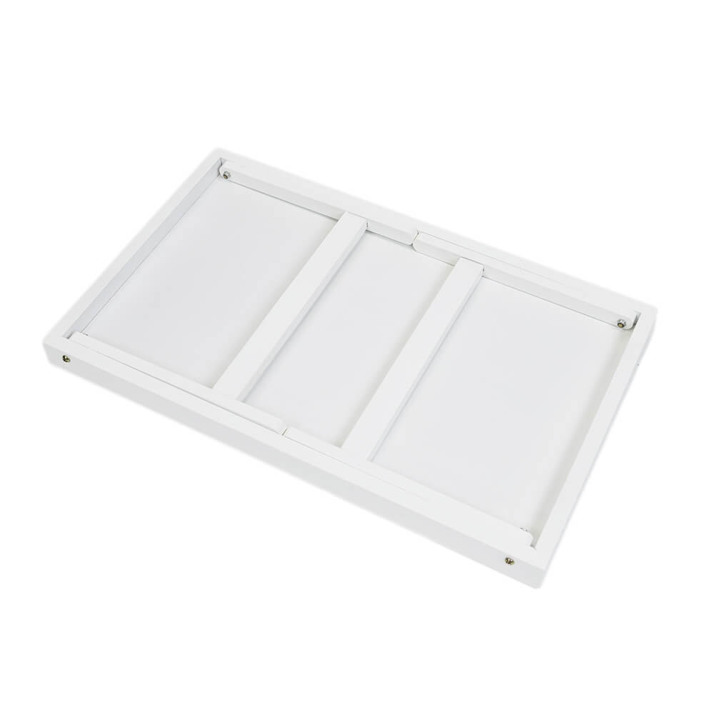 Сервировочный деревянный столик со складными ножками. По периметру столешницы имеется небольшой бортик, предохраняющий посуду от скатывания. Приспособление покрыто белой эмалью. Вес столика - 1400 грамм.
